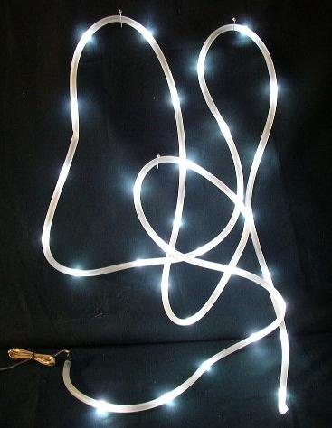 This lighting is ideal for lining buildings, windows, trees, gazebos, architectural details, stairs, deck railings, patios, boats and any other outdoor object you can think of, where you need lights using BATTERY for power, BATTERY LED Rope Lights can be placed practically anywhere without messy wires or the need of nearby outlets. The rope lights will stay illuminated for 10+ hours depending on Battery type used. Each rope lights has 50 LED lights that will make a definite night time statement, and are rated at over 100,000 hours of life. Includes Rope Light String, battery box for 3AA batteries, not included. Battery Box is 3/4" x 2"x 2 5/8" and holds 3- AA batteries. Remember the better the batteries the longer the lights will stay lit.This is one new 23 ft.-total length- of WHITE BATTERY LED rope lights. The lighted length is @17 ft. with a 6 ft. lead cord to place the battery box panel. The tube is 3/8" across or 1 cm. Can be used inside or outside