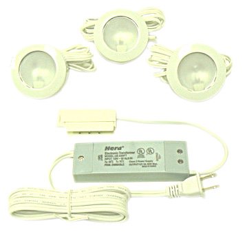 This friction fit spotlight is designed for installation in high end kitchen cabinets, display cases and furniture. Set includes: Lights with 72" connecting cable, HLOMN60LT premium transformer with power cord and terminal block, screws and instructions.