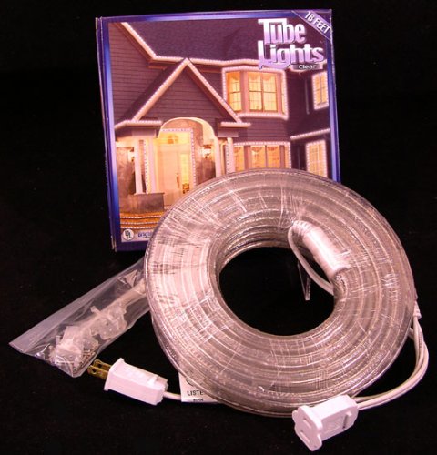 Tube lights are bright flexible outdoor lighting sets that are easy to shape and use for trimming and accenting houses, trees, bushes, fences, walkways and other objects. They consist of a flexible, clear, 1/2 inch X 18 foot plastic tube inside of which are 216 small, clear, bright lights spaced 1 inch apart. As many as 5 sets of tube lights can be joined to make up to 81 feet of continuous illumination. The sets are U.L. listed and have an end plug that is fused and polarized for added safety. The other end has a molded easy-connect outlet that can be joined to another set of tube lights.The bulbs have an amazing life of 35000 hours each so that if you burn them for an average of 8 hours a day, every day, for 6 months of the year they would last approx. 24 years. Tube light sets are rated at 4 amp maximum and are designed for standard household current. The set comes boxed with clips plus plastic ties to help you secure them to various objects. For hundreds more craft, art and hobby products, be sure to visit our National Artcraft Storefront. We have the creative component you need
