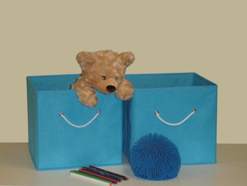 Sourcing Solutions' 2 Piece Folding Storage Bin set features 2 large-capacity bins that hold toys, games, art/craft supplies, clothes and more. Keep in the kids room, family room, or any room in the house that could use extra storage: fits on a closet shelf, bookshelf or desk. Each set includes 2 light blue bins with white rope handles; bins fold flat when not in use. Made of non-woven polypropylene and paperboard. Assembled size: 10.5-inch W by 10.5-inch D by 10-inch H.